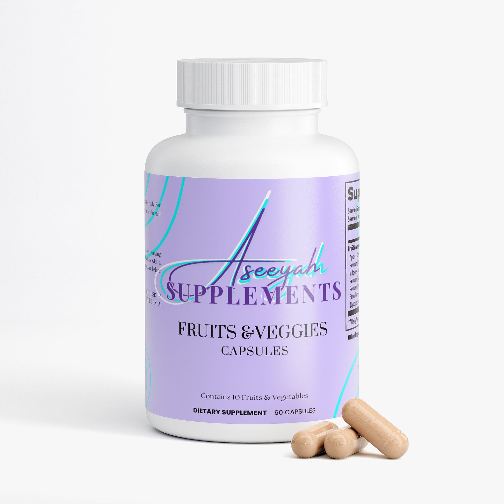 Ingredients: Apple Fiber Powder (Malus pumila) (fruit), Carrot Powder (whole carrot), Beet Root Powder (Beta vulgaris) (root), Blueberry Powder (fruit), Garlic Powder (bulb), Ginger Powder (root), Raspberry Powder (fruit), Red Bell Pepper Powder (fruit), Strawberry Juice Powder (fruit), Tomato Extract (Lycopersicon esculentum) (fruit), Gelatin (capsule), Brown Rice Flour.