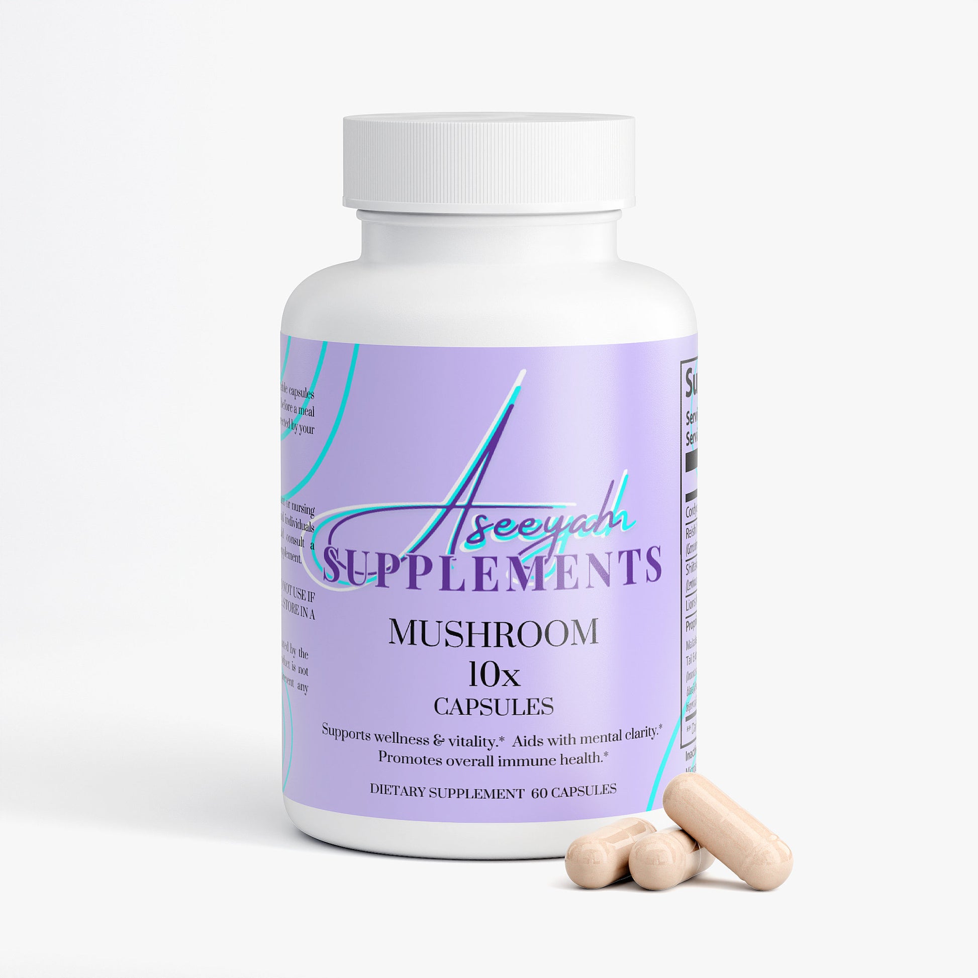 Ingredients: Cordyceps Sinensis Powder, Reishi Mushroom Extract, Shiitake Mushroom Extract, Lions Mane, Proprietary Blend (Maitake Mushroom Extract, Turkey Tail Extract, Chaga Mushroom Extract, Royal Sun Agaricus Extract, White Button Mushroom Extract, Black Fungus Extract, Cellulose (Vegetable Capsule), Microcrystalline Cellulose, Magnesium Stearate.