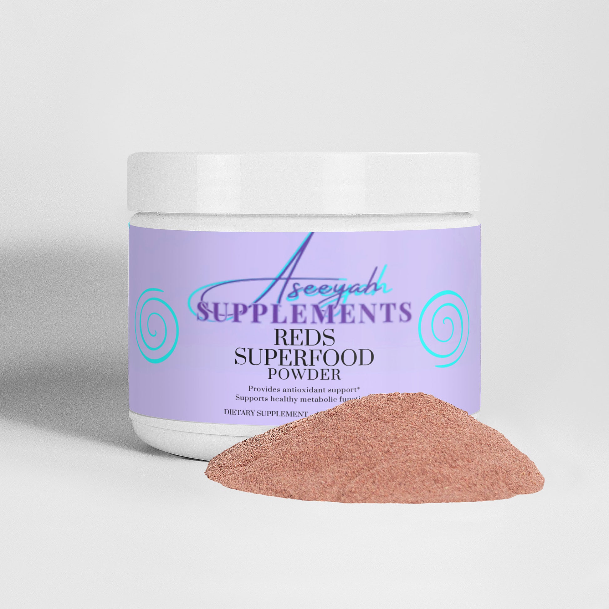 This reds powder supplement offers a rich blend of fruits, vegetables, and botanicals aimed at delivering antioxidants, anti-inflammatory compounds, fiber, and essential nutrients for overall health. The formula includes Beet Root, Strawberry Juice, Hibiscus, and a variety of other nutrient-dense ingredients like Acai Juice Powder and Cranberry Powder, designed to support optimal wellness. With a content of 120 grams, this supplement is perfect for daily consumption, providing a convenient way to boost your intake of vital nutrients and antioxidants to support health and vitality without the need for artificial additives.*